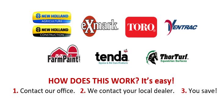 Once approved for the equine program, you can purchase your dream equipment at your local dealer using our discounts. Your dealer will be rebated by their equipment manufacturer to recoup those extra savings and keep their business running.